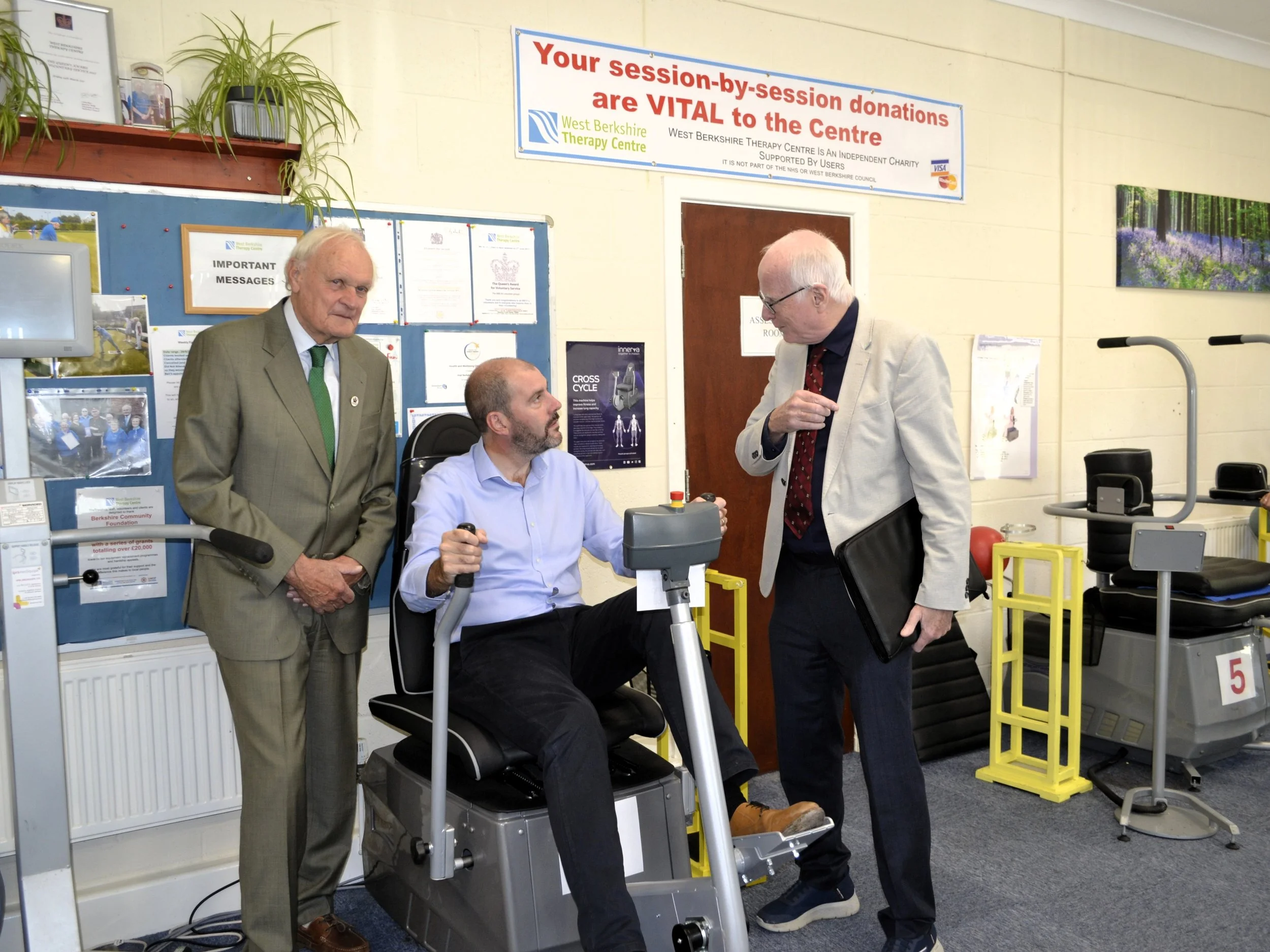 Mr Dillon, Liberal Democrat MP for Newbury since 2024, saw for himself the importance of the work that West Berkshire Therapy Centre undertakes on a daily basis. He spoke to Matthew (one of his constituents but also our client and volunteer) about the physical and social impact the Centre has on the lives of the clients who attend, and how regular exercise can lead to pain reduction and an increase in strength and/or mobility among other benefits.